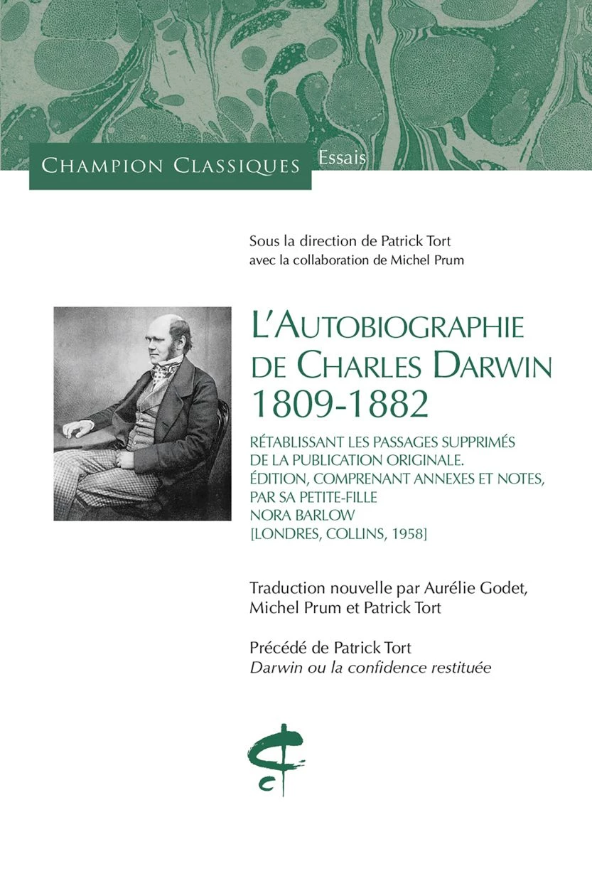 Parution aux éditions Champion de L’Autobiographie de Charles Darwin. 1809-1882. Rétablissant les passages supprimés de la publication originale. Édition, comprenant annexes et notes, par sa petite-fille Nora Barlow [Londres, Collins, 1958].