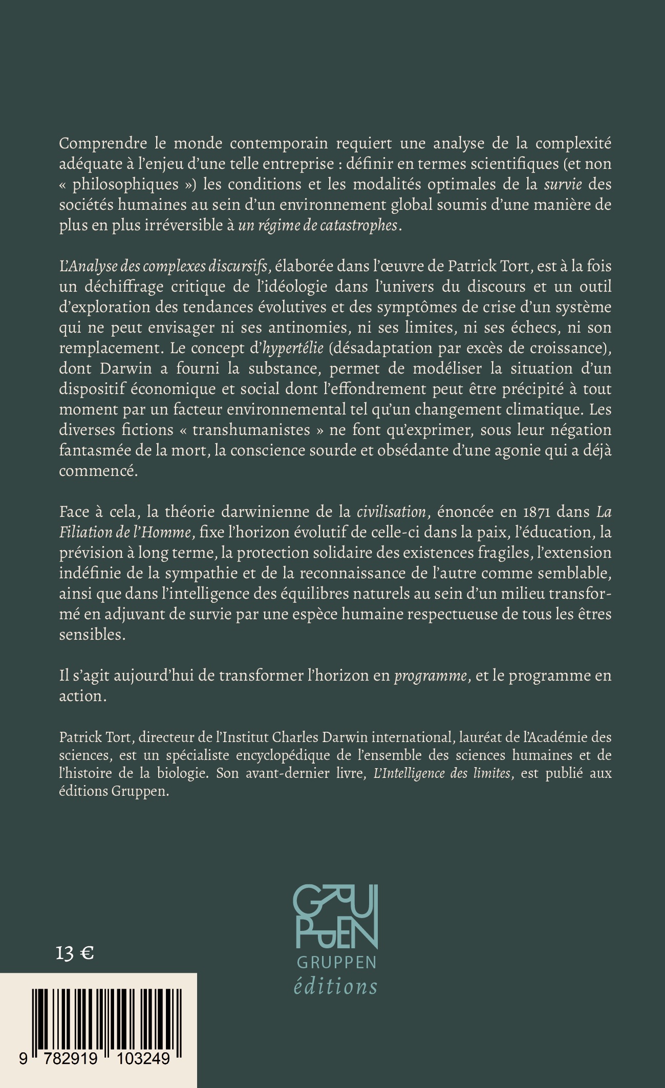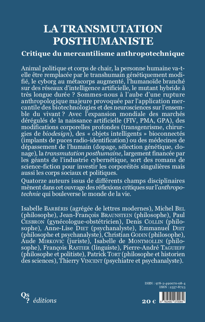 Patrick Tort répond aux questions de Fabien Ollier sur L’Intelligence des limites dans un ouvrage collectif consacré à la critique du transhumanisme : La Transmutation posthumaniste. Critique du mercantilisme anthropotechnique.